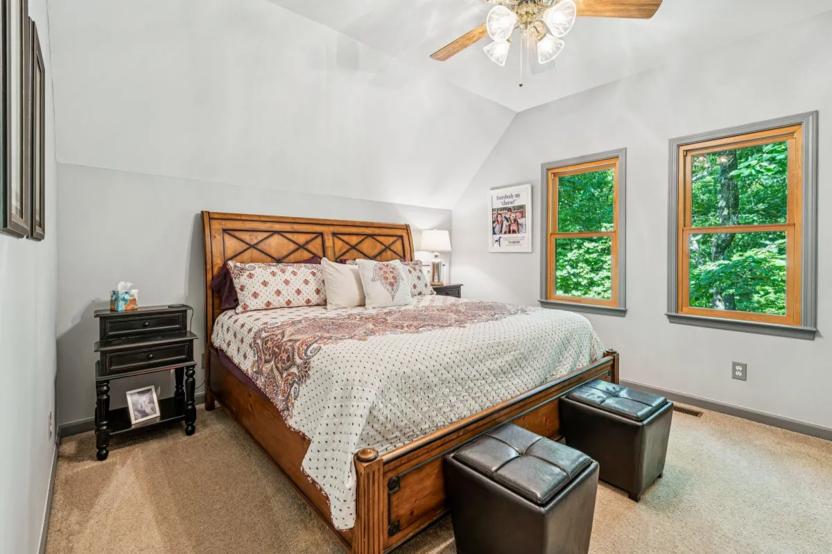 121 Laughing Fox Knoll- Tucked at the end of a quiet cul-de-sac, this 3BR plus office/3BA home is move-in ready and designed for relaxed mountain living. Highlights: • Vaulted wood ceilings + stone fireplace. • Open kitchen w/ breakfast bar. • Primary suite w/ serene woodland views. • Screened porch & outdoor patios. • Terrace level w/ family room + guest space. Just steps from Indian Rocks Park trails & creeks. Your Big Canoe mountain escape awaits! Love it? Schedule your showing! Furnished: 3 bedrooms, dining table & leaves (seats 8),8 chairs, 4 bar stools, lower level couch, chair & table, master bathroom vanity, both sets of porch furniture, wine cooler and second refrigerator. Note additional items on Seller's Property Disclosure. ***A mandatory $4,500.00 capital contribution fee paid by the purchaser to the Big Canoe Property Owners’ Association will be due at closing. Pursuant to Article II, Section 1, Paragraph bb of the Class “A” Covenants for the Big Canoe community, all property transfers are subject to the Big Canoe developer’s right of first refusal.